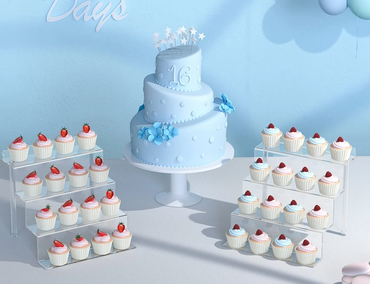 - Veelzijdig gebruik: deze transparante acryl-displaystandaard is perfect geschikt voor het presenteren van speelgoedfiguren in kasten of werkbladen, voor het verzamelen van borrelglazen, voor het vieren van feestdesserts en voor het presenteren van cosmetica en huidverzorgingsproducten op de commode. Hij kan ook worden gebruikt als kruidenstandaard voor het plaatsen van kruiden en kruiden. Je kunt deze trapsgewijze acrylstandaard thuis, op kantoor, op feestjes, in de winkel enz. gebruiken.