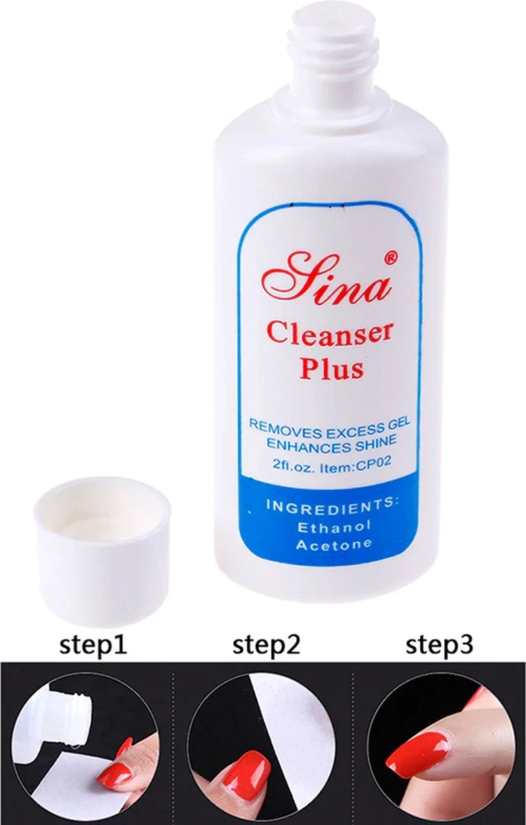 ►1 Flesje Cleanser 60 ml. (tbv ontvetten eigen negels of nepnagels en plaklaag verwijderen)