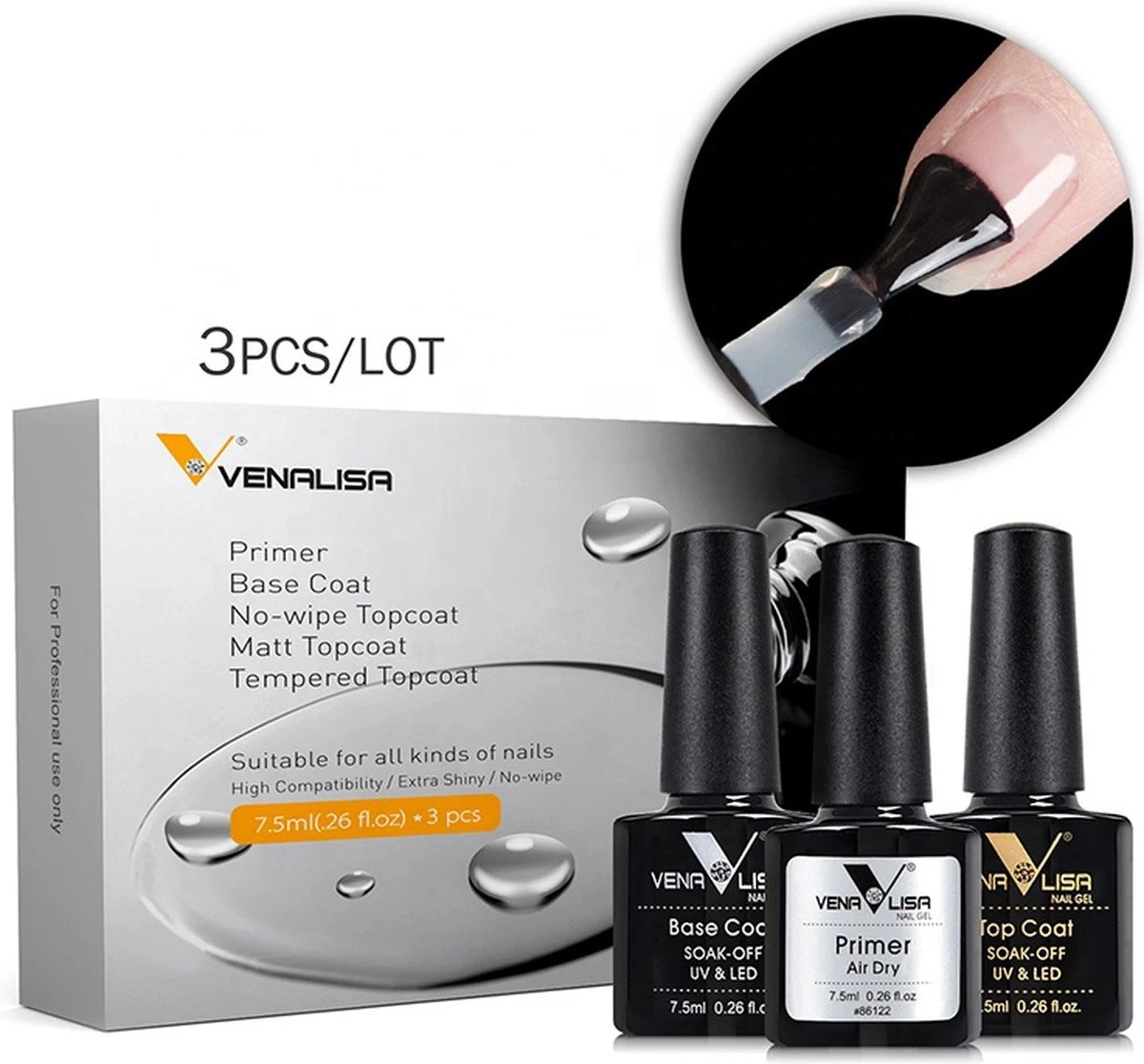 Venalisa – Base Coat, Primer & Top Coat – Gel Nagellak – Led/UV Gellak Set
